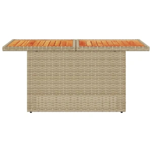 Gather around this versatile garden table to enjoy a cup of coffee or have a chat with your family and friends in the garden, backyard, or on the patio! Durable material: PE rattan, also known as poly rattan, is a strong, low-maintenance synthetic material that looks like natural rattan. It's lightweight, easy to clean, and commonly used for outdoor furniture due to its durability and weather-resistant properties.Adjustable tabletop: The tabletop can be lifted up to make the table higher, which transforms the outdoor table from a coffee table to a dining table. It's perfect for having guests over or eating meals outside.Stable and easy-to-clean tabletop: This garden table has an acacia wood top that is sturdy, durable, and easy to clean with a damp cloth.Robust and stable frame: The powder-coated steel frame ensures that the garden furniture is strong and stable for daily outdoor use. Good to know:To make sure your outdoor furniture stays beautiful, we recommend protecting it with a waterproof cover.