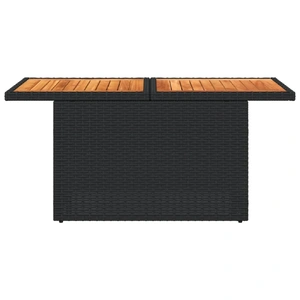 Gather around this versatile garden table to enjoy a cup of coffee or have a chat with your family and friends in the garden, backyard, or on the patio! Durable material: PE rattan, also known as poly rattan, is a strong, low-maintenance synthetic material that looks like natural rattan. It's lightweight, easy to clean, and commonly used for outdoor furniture due to its durability and weather-resistant properties.Adjustable tabletop: The tabletop can be lifted up to make the table higher, which transforms the outdoor table from a coffee table to a dining table. It's perfect for having guests over or eating meals outside.Stable and easy-to-clean tabletop: This garden table has an acacia wood top that is sturdy, durable, and easy to clean with a damp cloth.Robust and stable frame: The powder-coated steel frame ensures that the garden furniture is strong and stable for daily outdoor use. Good to know:To make sure your outdoor furniture stays beautiful, we recommend protecting it with a waterproof cover.
