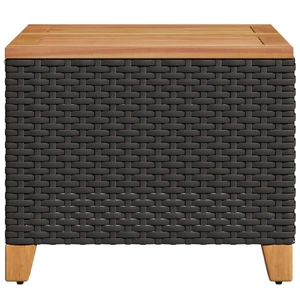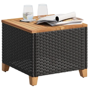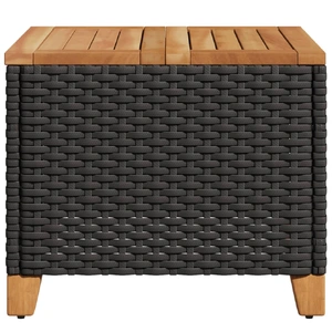 Gather around this garden table to enjoy a cup of coffee or have a chat with your family and friends in the garden, backyard, or on the patio! Durable material: PE rattan, also known as poly rattan, is a strong, low-maintenance synthetic material that looks like natural rattan. It's lightweight, easy to clean, and commonly used for outdoor furniture due to its durability and weather-resistant properties.Stable and easy-to-clean tabletop: This garden table has an acacia wood top that is sturdy, durable, and easy to clean with a damp cloth.Robust and stable frame: The powder-coated steel frame ensures that the garden furniture is strong and stable for daily outdoor use. Good to know:To make sure your outdoor furniture stays beautiful, we recommend protecting it with a waterproof cover.