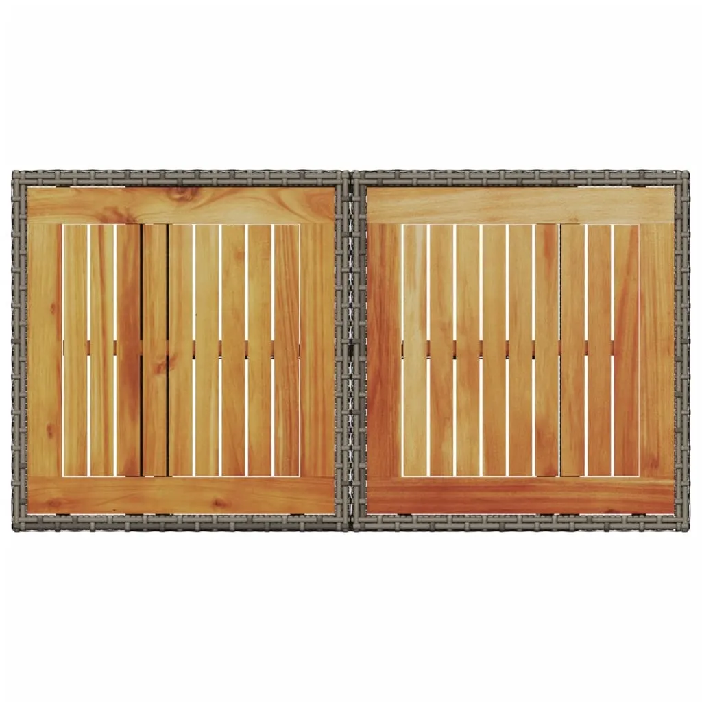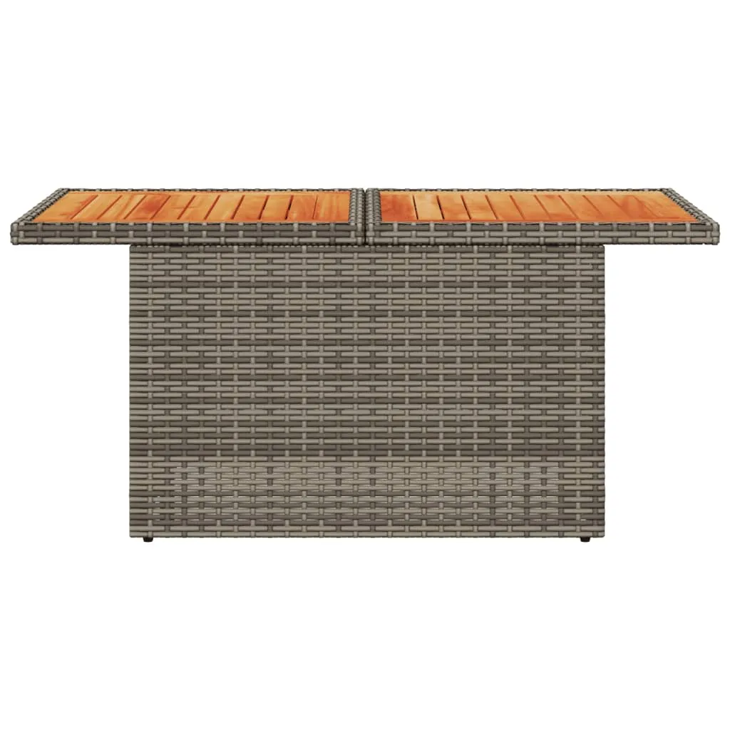Gather around this versatile garden table to enjoy a cup of coffee or have a chat with your family and friends in the garden, backyard, or on the patio! Durable material: PE rattan, also known as poly rattan, is a strong, low-maintenance synthetic material that looks like natural rattan. It's lightweight, easy to clean, and commonly used for outdoor furniture due to its durability and weather-resistant properties.Adjustable tabletop: The tabletop can be lifted up to make the table higher, which transforms the outdoor table from a coffee table to a dining table. It's perfect for having guests over or eating meals outside.Stable and easy-to-clean tabletop: This garden table has an acacia wood top that is sturdy, durable, and easy to clean with a damp cloth.Robust and stable frame: The powder-coated steel frame ensures that the garden furniture is strong and stable for daily outdoor use. Good to know:To make sure your outdoor furniture stays beautiful, we recommend protecting it with a waterproof cover.