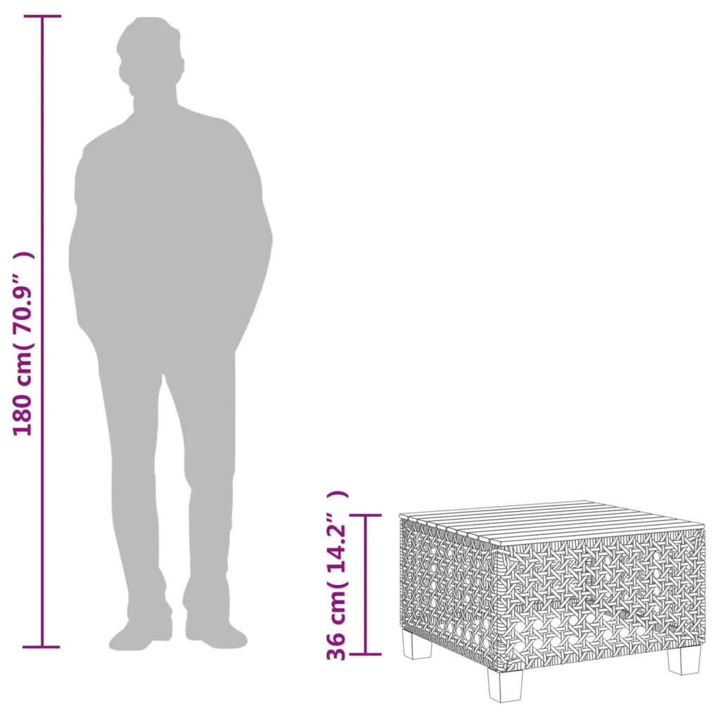 Gather around this garden table to enjoy a cup of coffee or have a chat with your family and friends in the garden, backyard, or on the patio! Durable material: PE rattan, also known as poly rattan, is a strong, low-maintenance synthetic material that looks like natural rattan. It's lightweight, easy to clean, and commonly used for outdoor furniture due to its durability and weather-resistant properties.Stable and easy-to-clean tabletop: This garden table has an acacia wood top that is sturdy, durable, and easy to clean with a damp cloth.Modular design: This garden sofa is designed as part of a lounge set, but can also be used as a separate sofa. You can combine it with other modular segments, such as a table, footrest, and other sofa elements, to create your own personal lounge set!Robust and stable frame: The powder-coated steel frame ensures that the garden furniture is strong and stable for daily outdoor use. Good to know:To make sure your outdoor furniture stays beautiful, we recommend protecting it with a waterproof cover.