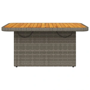 Gather around this versatile garden table to enjoy a cup of coffee or have a chat with your family and friends in the garden, backyard, or on the patio! Durable material: PE rattan, also known as poly rattan, is a strong, low-maintenance synthetic material that looks like natural rattan. It's lightweight, easy to clean, and commonly used for outdoor furniture due to its durability and weather-resistant properties. Adjustable tabletop: The tabletop can be lifted to make the table higher, which transforms the outdoor table from a coffee table to a dining table. It's perfect for having guests over or eating meals outside. Stable and easy-to-clean tabletop: This garden table has an acacia wood top that is sturdy, durable, and easy to clean with a damp cloth. Robust and stable frame: The powder-coated steel frame ensures that the garden furniture is strong and stable for daily outdoor use. Good to know: To make sure your outdoor furniture stays beautiful, we recommend protecting it with a waterproof cover.