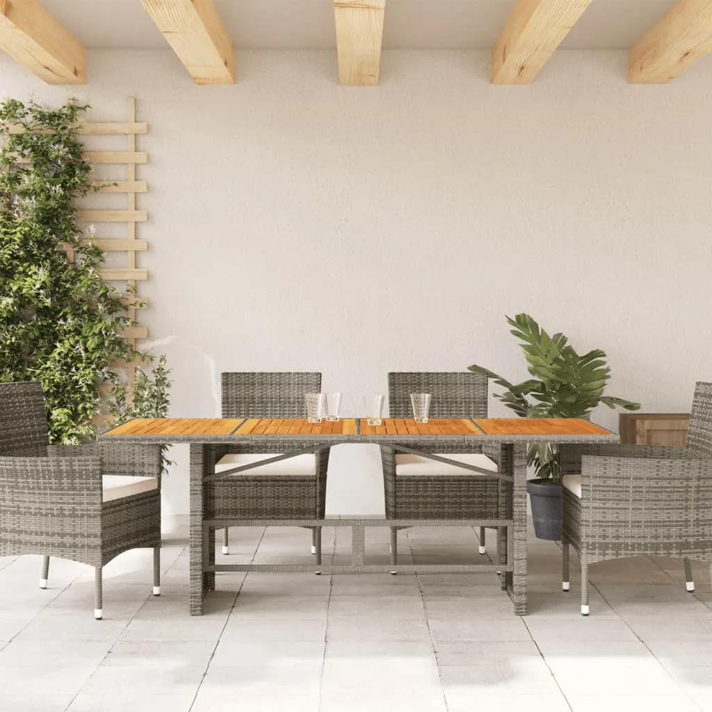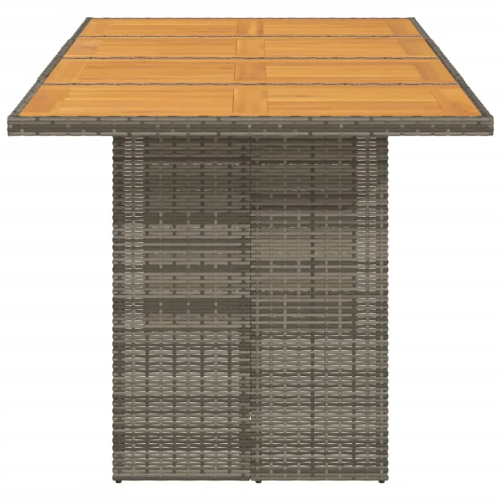 This garden table with a wooden top, designed with clean and simple lines, is an excellent choice for your garden, patio, and other outdoor space. Durable material: PE rattan, also known as poly rattan, is a strong, low-maintenance synthetic material that looks like natural rattan. It's lightweight, easy to clean, and commonly used for outdoor furniture due to its durability and weather-resistant properties.Stable and easy-to-clean tabletop: This garden table has an acacia wood top that is sturdy, durable, and easy to clean with a damp cloth.Robust and stable frame: The powder-coated steel frame ensures that the garden furniture is strong and stable for daily outdoor use. Good to know:To make sure your outdoor furniture stays beautiful, we recommend protecting it with a waterproof cover.