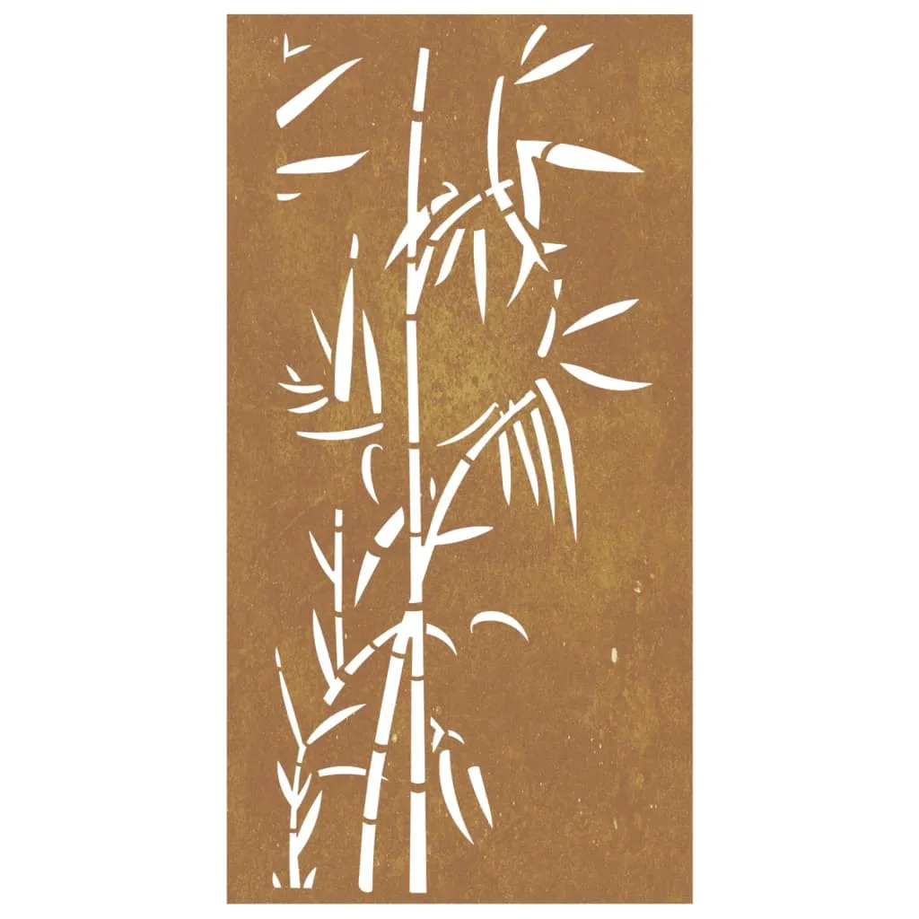 Turn a blank wall or fence into a masterpiece with this garden wall decoration. Durable material: Corten steel, also known as weathering steel. This is anti-corrosive by its very nature. It develops a rusty protective layer against corrosion when first exposed to atmospheric conditions. Thus, you don't need to paint it. This can help you save on maintenance and repair costs. The distinctive brown colour on the corten steel will surely be an eye-catcher. Finally, weathering steel is exceptionally durable and will stand up to the test of time.Exquisite design: The metal wall decoration adopts a hollow design of bamboos pattern, creating a natural atmosphere in your garden.Easy installation: The outdoor wall decoration is easy to install with the mounting holes on the back. Good to know:This product is not rusted yet and has a normal metal colour when you receive it, but rust will develop over time. You could speed up the rusting process by spraying it with soap water and salt water. To keep your clothes stain-free, avoid contact with the developing rust layer.