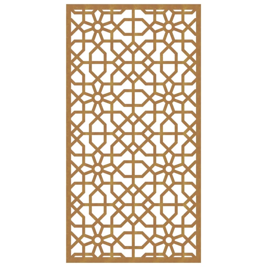 Turn a blank wall or fence into a masterpiece with this garden wall decoration. Durable material: Corten steel, also known as weathering steel. This is anti-corrosive by its very nature. It develops a rusty protective layer against corrosion when first exposed to atmospheric conditions. Thus, you don't need to paint it. This can help you save on maintenance and repair costs. The distinctive brown colour on the corten steel will surely be an eye-catcher. Finally, weathering steel is exceptionally durable and will stand up to the test of time.Exquisite design: The metal wall decoration adopts a hollow design of the Moorish pattern, making your garden more attractive.Easy installation: The outdoor wall decoration is easy to install with the mounting holes on the back. Good to know:This product is not rusted yet and has a normal metal colour when you receive it, but rust will develop over time. You could speed up the rusting process by spraying it with soap water and salt water. To keep your clothes stain-free, avoid contact with the developing rust layer.