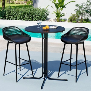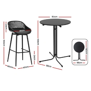 Upgrade your outdoor space with Gardeon's durable 3-piece bar set, designed to elevate your patio with modern style and resilience. The table is crafted with a robust steel frame and a low-maintenance MDF top that resists weathering and cleans easily. With a load capacity of 50kg and non-slip stability, it offers both strength and safety. The matching bar stools feature polypropylene seats, complete with integrated footrests for superior comfort. Quick to assemble and built for all-season use, this set is perfect for balconies, gardens, or poolside gatherings. Combining enduring durability with contemporary aesthetics, Gardeon's bar set is ideal for creating a stylish alfresco dining experience.