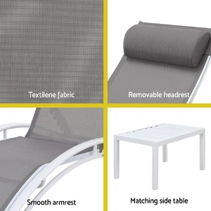 Make the most out of every sunny day with a Gardeon Sun Lounger. The durable steel frame is designed to withstand the wind, rain and shine gracefully, and the premium textilene fabric is comfortable as well as weather and UV-resistant. The slender profile is designed to please, with 5 adjustable backrest settings offering you the perfect position to rest and relax. The padded headrest is adjustable and removable so you can achieve your ideal level of comfort. Best of all, the lounger is easily assembled and can be used anywhere such as the beach, the park, poolside or even indoors. Have more fun in the sun with a Gardeon Sun Lounger.