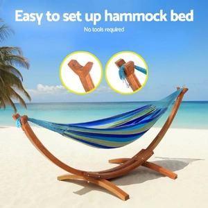Experience ultimate relaxation with the Gardeon Hammock Bed Stand, featuring a beautifully crafted curved larch wooden frame. Designed to accommodate two people, this durable hammock is perfect for both indoor and outdoor use, providing a stylish and comfortable retreat. With its easy setup and weather-resistant materials, the Gardeon Hammock Bed Stand offers a seamless blend of luxury and convenience.