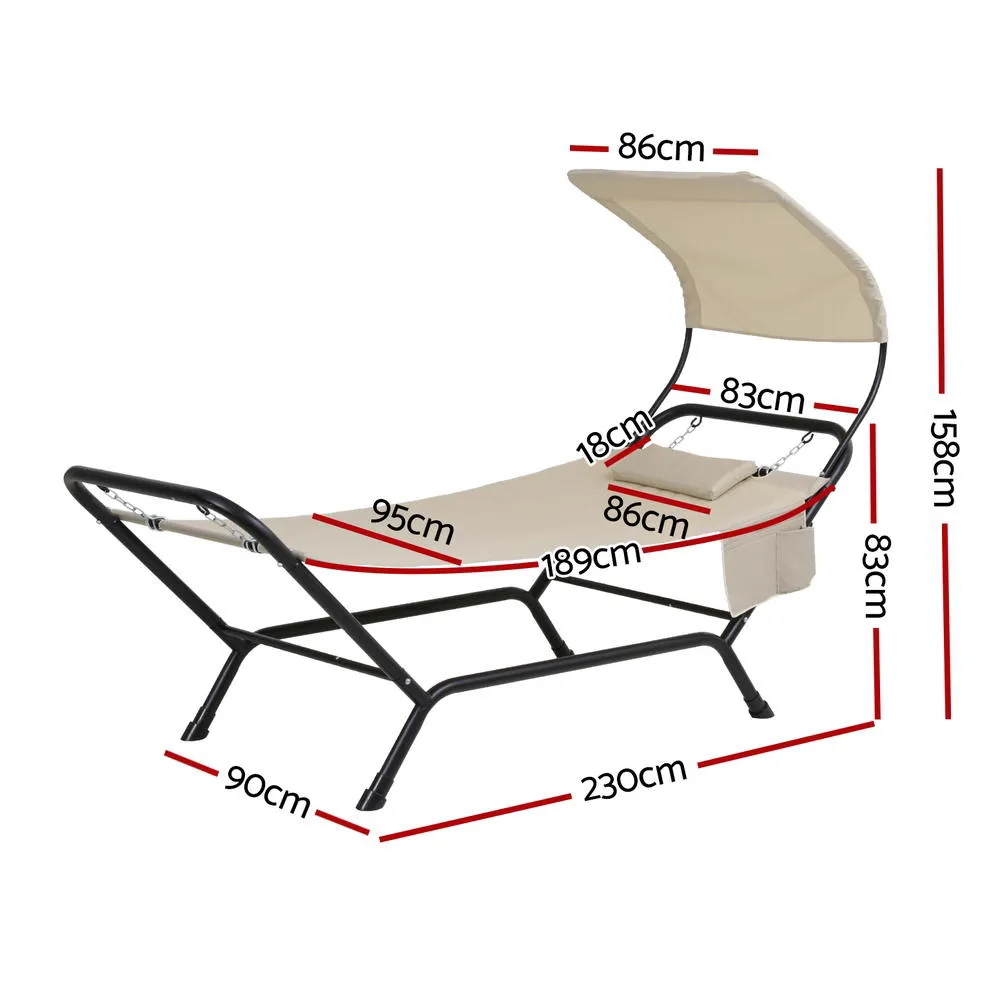 Relax in style with the Gardeon Hammock Lounge Bed, designed for ultimate comfort and durability. The sturdy steel frame and weather-resistant materials ensure long-lasting use, while the detachable pillow and storage bag add convenience. Ideal for patios, backyards, and poolside lounging, this hammock bed is easy to assemble and perfect for any outdoor space.