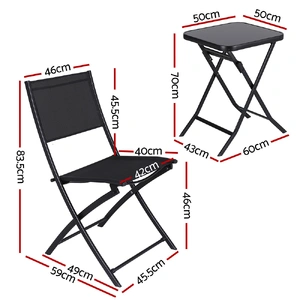 Upgrade your outdoor relaxation with Gardeon foldable 3-piece patio set, designed for portability and style. The lightweight chairs and square side table fold flat for easy storage and transport, perfect for small spaces or on-the-go use. Made with durable, breathable mesh fabric, the chairs keep you cool and dry, while the powder-coated steel frames resist rust and weathering. The modern table offers a handy spot for drinks or snacks. Ideal for decks, patios, or picnics��durable, compact, and effortlessly chic.