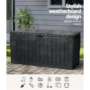 Looking for some extra storage space for your garden or outdoor essentials and tools? Gardeon has you covered with this stylish and versatile Outdoor Storage Box. The box is made from durable PP plastic in a weatherboard design that is UV and weather-resistant with an excellent weight capacity. It has a storage capacity of 220L to fit all of your outdoor or indoor essentials. It also features a double-layer construction for extra stability. It flaunts a fantastic 2-in-1 design: you can use it as a storage cabinet and a comfortable outdoor bench. It comes with convenient integrated wheels, moulded handles and a lockable lid to keep out children, pets or other unwanted guests. Easy to assemble and suitable for indoor and outdoor use, you can add style and function anywhere in the home with a Gardeon Outdoor Storage Box.