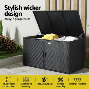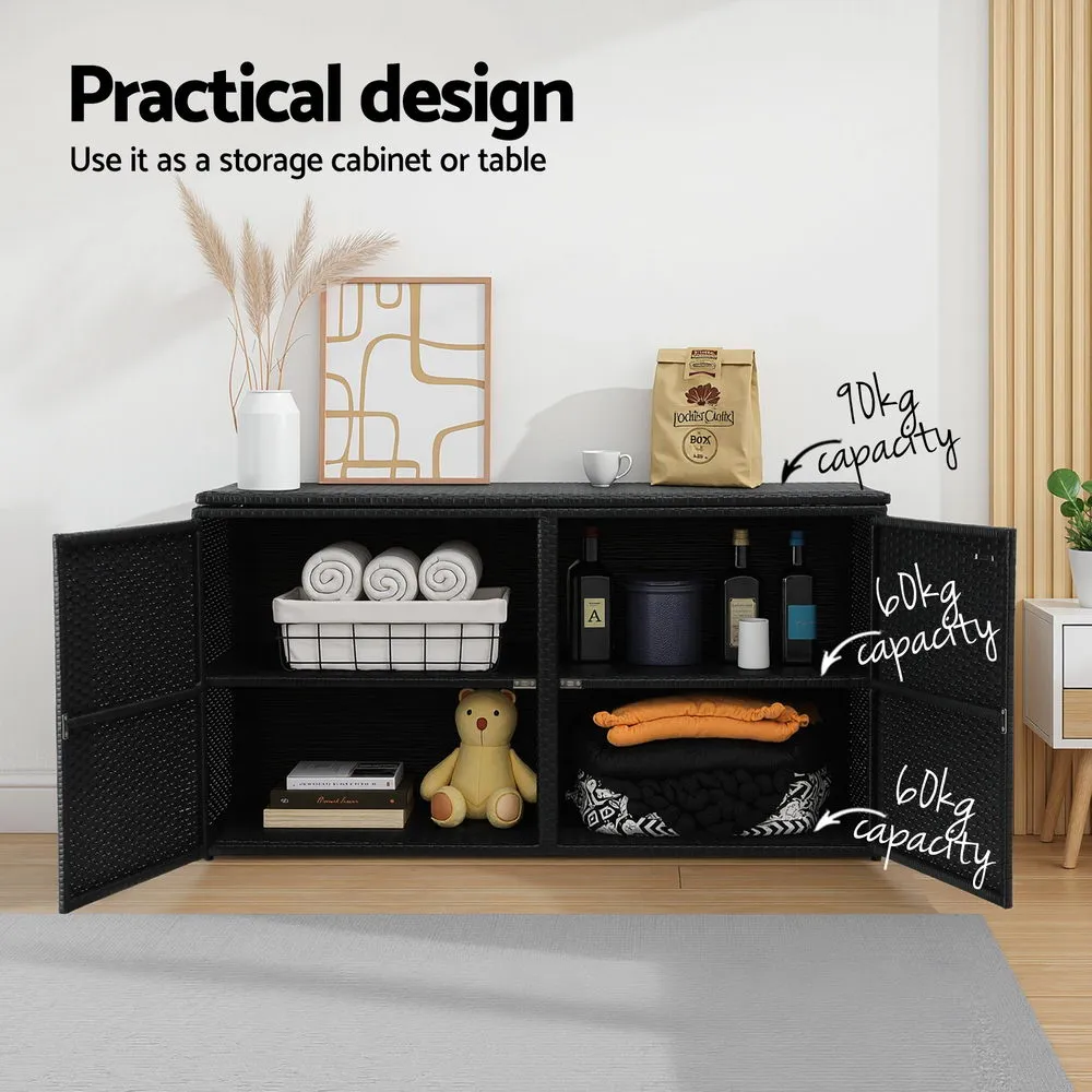 Looking for some extra storage space for your garden or outdoor essentials and tools? Gardeon has you covered with this stylish and versatile Wicker Outdoor Storage Cabinet. The outdoor cabinet is made from durable handwoven wicker that is UV and weather resistant and boasts a strong steel frame with excellent weight capacity – 60kg per shelf and 90kg on the top cover. It has two layers of inner storage space with two different ways of opening. It flaunts a fantastic 2-in-1 design: you can use it as just a storage cabinet, or as a cabinet and side table. It is inherently safe with its wide variety of features including a safe hydraulic hinge, convenient rope handles, durable anti-rust hinges, non-slip foot pads and wall attachments to prevent tipping. Suitable for indoor and outdoor use, you can add style and function to anywhere in the home with a Gardeon Wicker Outdoor Storage Cabinet.
