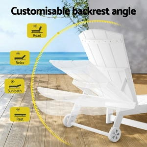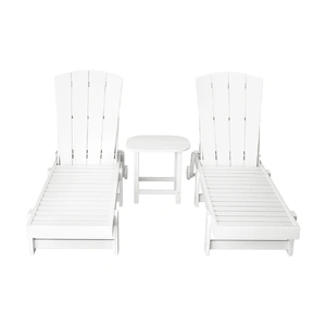 Upgrade your outdoor relaxation with the Gardeon 3-Piece Set! This versatile combo includes two 4-position adjustable chaise lounges and a durable HDPE side table, perfect for poolside, patio, or beach use. The lounges feature reclining backrests for sunbathing, reading, or napping, with 150kg weight capacity, weatherproof HDPE wood-grain construction, and stainless steel frames. Effortlessly move them with rolling wheels and handles. The matching side table is fade-resistant, supports 91kg, and includes water-draining slats and safety-curved edges. Zero maintenance��just wipe clean! Quick assembly lets you enjoy instant comfort. Ideal for stylish, hassle-free outdoor living!