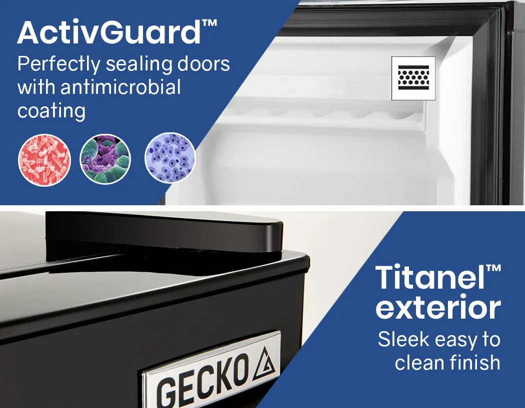 The Gecko is designed to perform in harsh Australian conditions. The latest compressor technology and thick insulation ensure that it can cool fast. It can also operate in ambient temperatures up to 38 degrees! The Gecko range features ActivSealTM technology that combines perfectly sealing doors with an anti-microbial coating to inhibit the growth of bacteria and mould. All this is wrapped in a sleek TitanelTM metal finish, ensuring it will look right at home anywhere, and is also ready for your souvenir magnet collection!