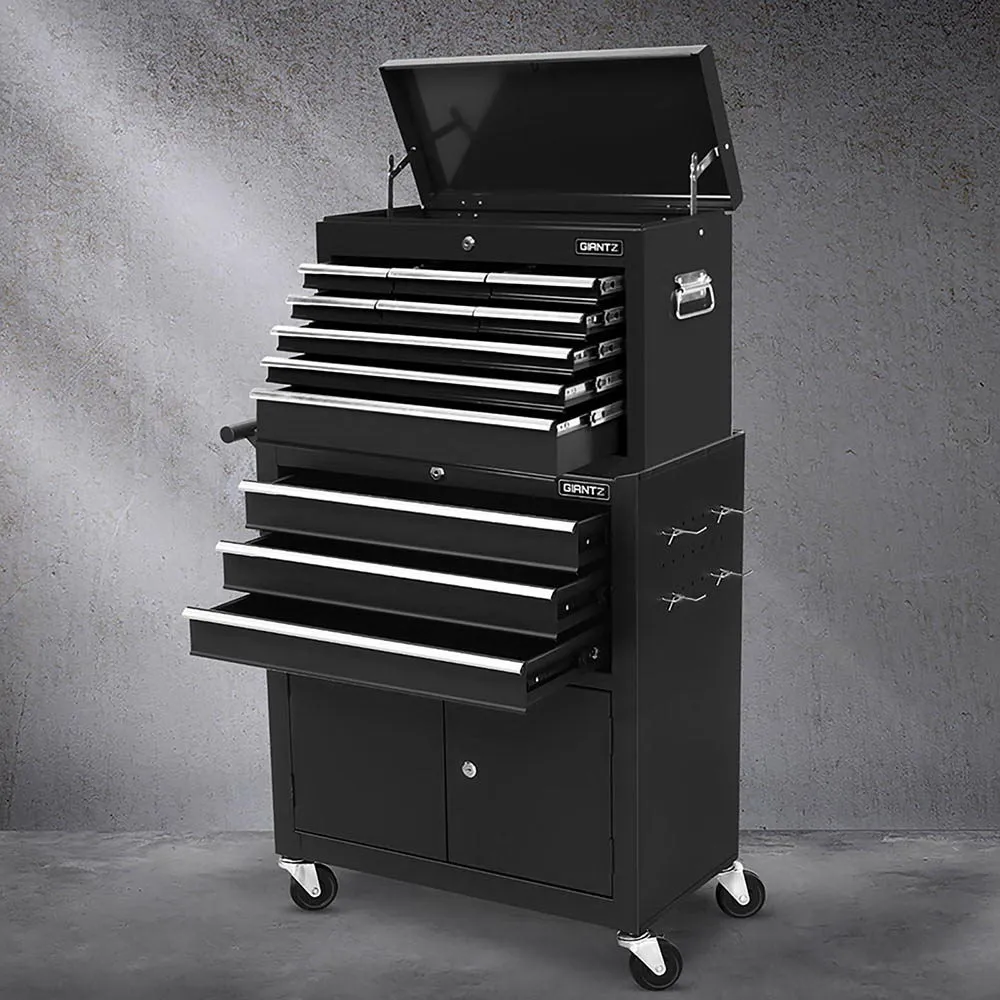 This robust, multi-drawer Giantz Tool Trolley is an essential for any workshop. Crafted from durable steel, it features smooth ball-bearing slides for easy access and a secure lock system for safety. Its spacious design accommodate tools of all shapes, complete with non-slip liners. The chest is also mounted on omni-directional castors with locakable front wheels, ensuring a smooth maneuverability and stable positioning. Sleek and functional, it's perfect for organizing and protecting your valuable tools.