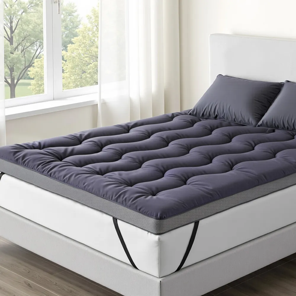 Enhance your sleep with our Giselle Bedding Pillowtop Topper. Featuring a 3D wave quilted pattern, breathable bamboo cover, and anti-allergy properties. It's hygienically vacuum-packed and machine-washable for easy care, ensuring a comfortable and clean sleeping environment.