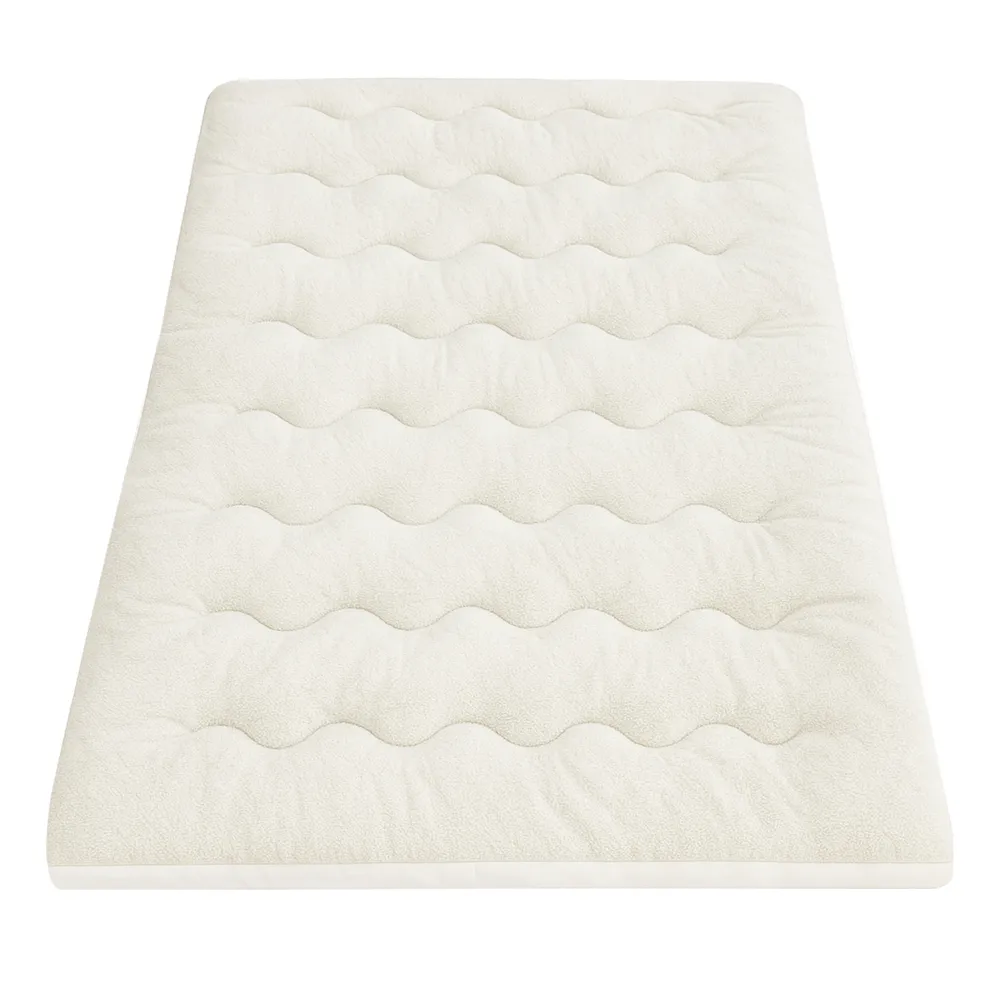Enhance your sleep with Giselle Bedding's 5cm pillowtop topper featuring innovative double-sided design. The cooling fabric side wicks moisture while the coral fleece provides plush warmth.1000GSM hollow fiber filling and 3D wave quilting create balanced support that fits mattresses up to 45cm deep. This highly breathable topper reduces heat buildup and comes vacuum-packed for hygiene. Machine washable for effortless maintenance.