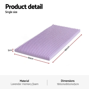 Experience deeper, more restful sleep with this 5cm Lavender-Infused Memory Foam Mattress Topper. Designed with a breathable egg crate structure, it enhances airflow while gently conforming to your body. The calming lavender scent promotes relaxation, making it perfect for unwinding after a long day. With over 1000 support points, the topper evenly distributes body weight and helps relieve pressure from key areas such as the shoulders and hips. Motion isolation ensures undisturbed rest, even if you share the bed. Ideal for hot sleepers, this topper offers cool, breathable comfort all night long.