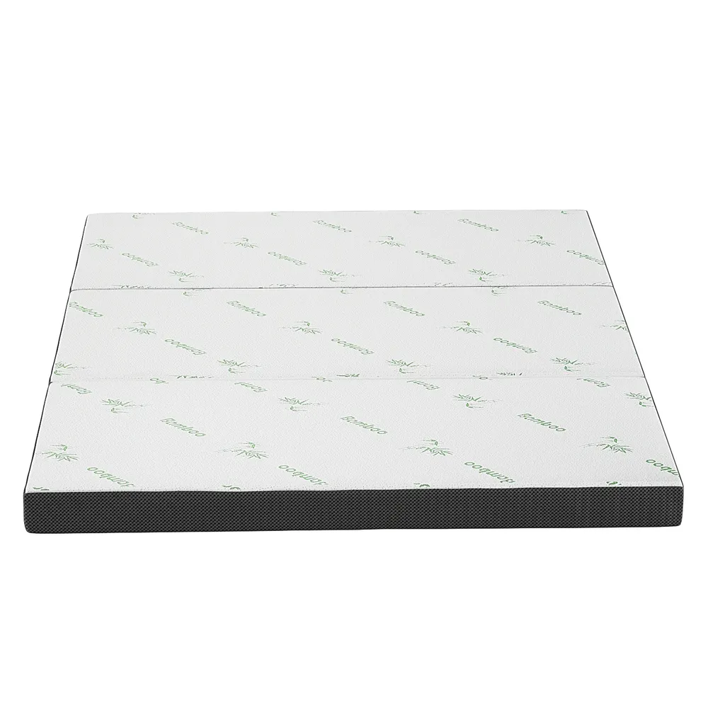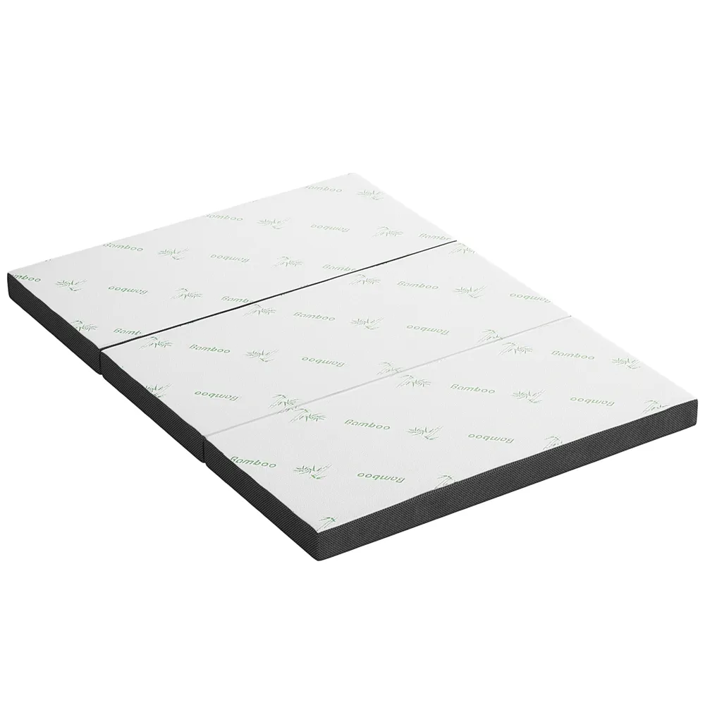 The Giselle Bedding Folding Mattress is a versatile and practical solution for your living space. Featuring a 3-fold design, it can easily be used as a chair or unfolded into a double bed for ultimate convenience. The breathable bamboo fabric surface ensures a comfortable sleeping or sitting experience, while the side and bottom are made with air mesh fabric to enhance airflow and keep you cool. With high-density foam and medium firmness, this mattress provides excellent support, whether you're using it for a quick nap or as an extra seating option.