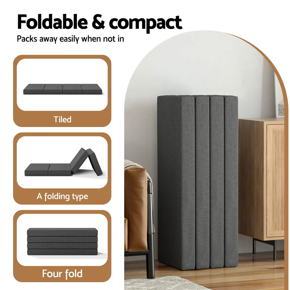 A couch by day, a bed by night. Convertible in use, our Giselle Bedding Folding Foam Mattress is great to have in any home. It is foldable and can easily be stored away or used as an extra couch during the day. Then when the sun begins to set, you can let it unfold to become a comfortable instant bed for sleepovers or unexpected guests. The mattress would also be perfect for places such as tiny city apartments and residential colleges and where there is limited space for large sofas and beds. Or to feel at home while you are out and about, such as during camping and road trips. And the mattress is not only versatile, but reliable. Its premium wear-resistant faux linen fabric cover is soft and breathable, while the high-density foam provides adequate support all round. Best of all, the cover is removable and washable for easy cleaning and maintenance.
