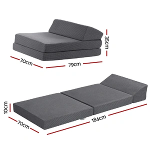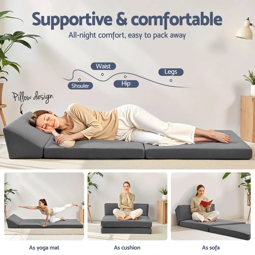 Giselle Bedding's foldable mattress features a 3-fold design with built-in pillow, ideal for use as a chair or bed. Crafted with high-density foam and a plush jacquard cover, it's both comfortable and compact. The zippered cover is removable, washable, and easy to store.