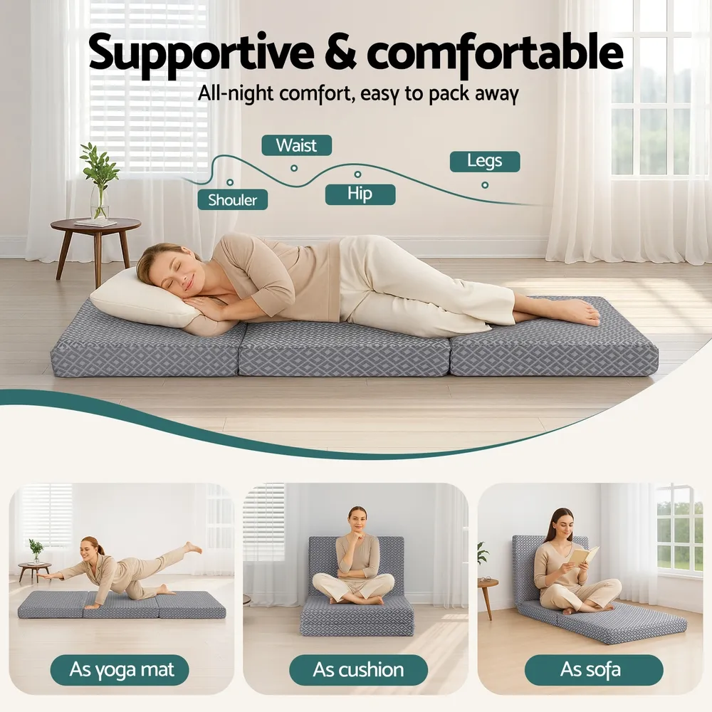 Upgrade your space with this foldable mattress from Giselle Bedding. Featuring comfort-soft memory foam, high-density support, and a jacquard knitted cover, it easily converts into a chair or bed. Removable zippered cover and anti-slip base make it ideal for guests or travel.