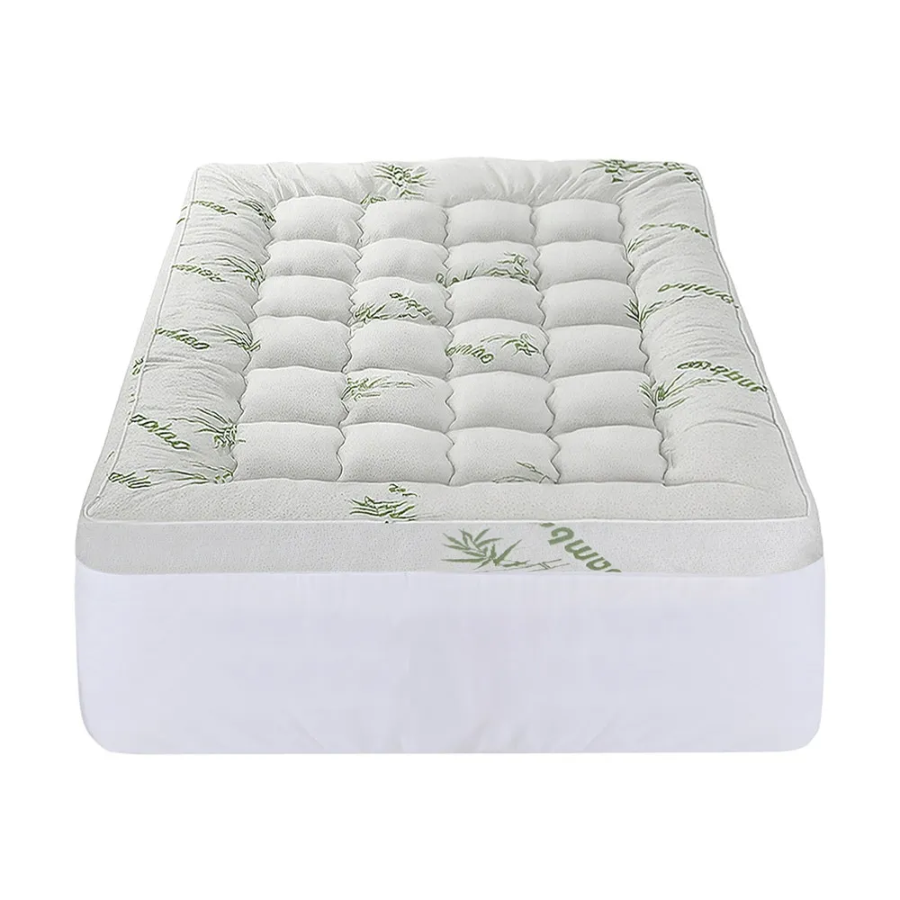 Elevate your sleep with the Giselle Bedding Pillowtop Topper, featuring an 11cm plush profile of 1500GSM hollow fiber beneath premium bamboo fabric. The 3D wave-check quilting enhances airflow while distributing weight evenly across your mattress. Designed for deep mattresses up to 45cm, this highly breathable topper arrives vacuum-packed for hygiene and is machine-washable for effortless maintenance.