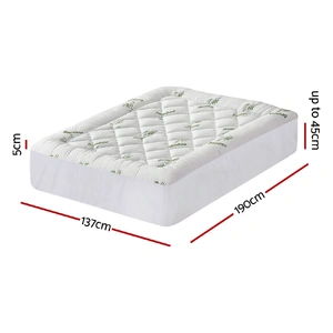 Experience cloud-like comfort with Giselle Bedding's 5cm Pillowtop Topper. Featuring a premium bamboo cover and 1000GSM hollow fiber filling, this topper enhances your mattress with balanced support. The 3D wave-check quilting promotes optimal airflow while evenly distributing body weight. Perfect for mattresses up to 45cm deep, its highly breathable design ensures cool, comfortable sleep. Arrives vacuum-packed for freshness and is machine-washable for easy care.