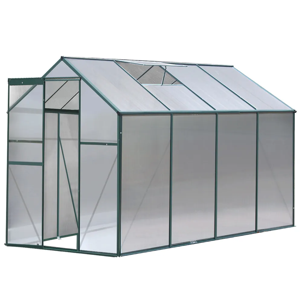 With an impressive capacity of 8.81m, it can house a wide variety of flora. The greenhouse features 4mm thick twin-wall UV-resistant polycarbonate panels, allowing up to 90% light transmission while effectively reducing the risk of plant burn.
