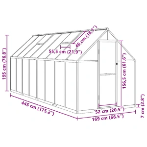 This greenhouse can accommodate a considerable number of plants and is a great solution for protecting your plants from the cold weather. Weather-resistant and sturdy material: The frame of the greenhouse is made of rust- and weather-resistant aluminium for high wind resistance and stability. The sheets are made of UV-resistant polycarbonate side panels, which are lightweight, durable and easy to maintain, and able to withstand winds and snow.Practical design: This greenhouse frame is equipped with a 6 cm high aluminium bottom profile structure that can be easily buried into the ground, saving on extra base costs.Thoughtful design: The built-in gutter system effectively allows water drainage, and the vent window is designed with 5 adjustable angles for air circulation to balance humidity and temperature. The hinged door also makes it easier for you to walk into the walk in greenhouse for daily use.Large walk-in grow space: The backyard greenhouse offers you ample space to cultivate a wide variety of plants or crops.Fast assembly design: This greenhouse frame features a fast assembly system for efficient and rapid installation. Warning: The greenhouse is not a construction building or conservatory, intended for leisure purposes. It is an impermanent standalone agricultural installation intended for hobby gardening only.