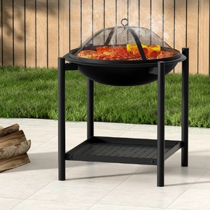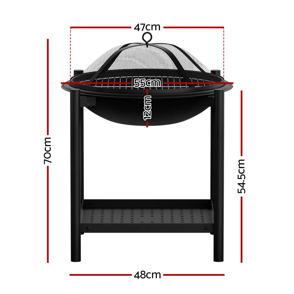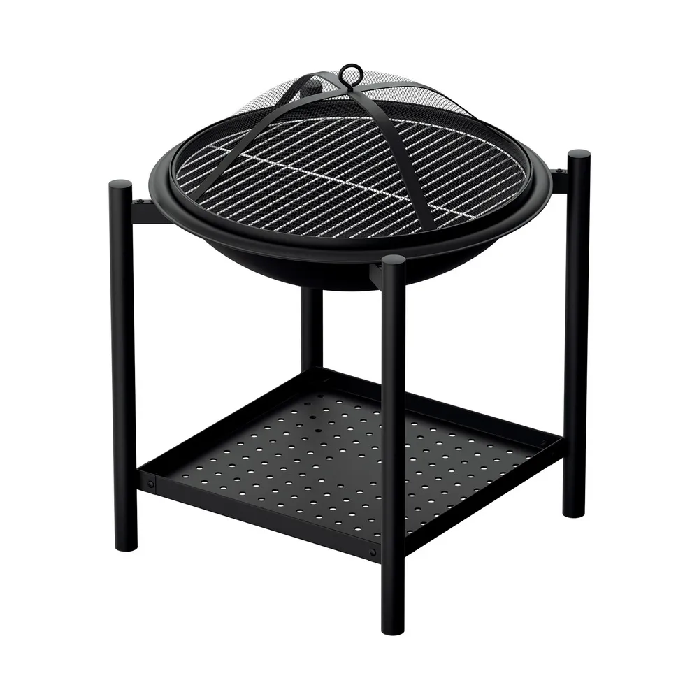 The Grillz Fire Pit BBQ is a versatile 2-in-1 fire pit and BBQ grill, featuring durable steel construction, a mesh spark screen, stainless grill rack, portable design, ample storage shelf, heat/rust-resistant coating, and high-temp protection - perfect for outdoor adventures.