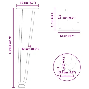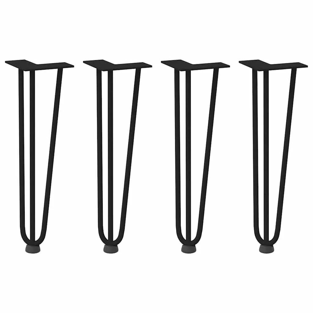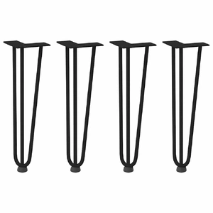 These hairpin legs for coffee tables combine form and function. It's an ideal choice for customising your coffee table. Durable material: This hairpin table leg is made of solid powder-coated steel, making it sturdy and long-lasting enough to support a heavy tabletop.Practical design: This hairpin table leg includes adjustable foot levellers, ensuring stability even on uneven floors and minimising floor scratches. Furthermore, the bracket incorporates pre-drilled holes and delivery-included screws for attaching the leg to the tabletop (not included), simplifying the assembly process.Modern aesthetics: The hairpin table leg offers a sleek and contemporary look. Its clean lines and geometric design enhance the overall appearance of the furniture. Good to know:The delivery only contains table legs, the tabletop is not included.