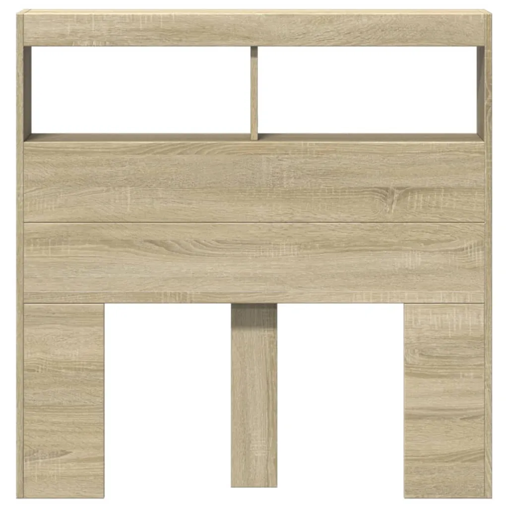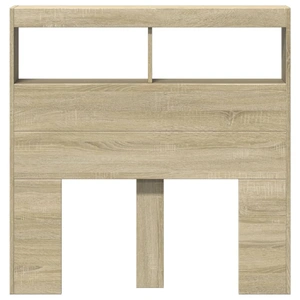 This headboard cabinet with LED, featuring a stylish design, gives your bed frame a stunning modern touch and is perfectly suitable in any bedroom. Durable material: The engineered wood is of exceptional quality with smooth surface and also features strength, stability and resistance to moisture.RGB LED lights: The bed headboard is equipped with vibrant RGB LED lights. With various customisable menus, you can effortlessly change the colour of the lights and even set them to adjust automatically. These LED lights not only enhance the contemporary look of the bed header but also add to its trendy appeal.Ample storage space: Featuring compartments and a sturdy top, the bed headboard cabinet is perfect for displaying your books, decorative items, picture frames and alarm clocks.Excellent support: The headboard for bed provides you with excellent back support when you sit up in bed to read or watch TV. Good to know:The delivery includes LED headboard only. The bed frame and mattress are not included. You can check our shop for the matching frames and mattresses.The product has a USB connector that requires a certified 5V USB power source (not included). Warning:To prevent it from tipping over, this product must be used with the provided wall attachment device.