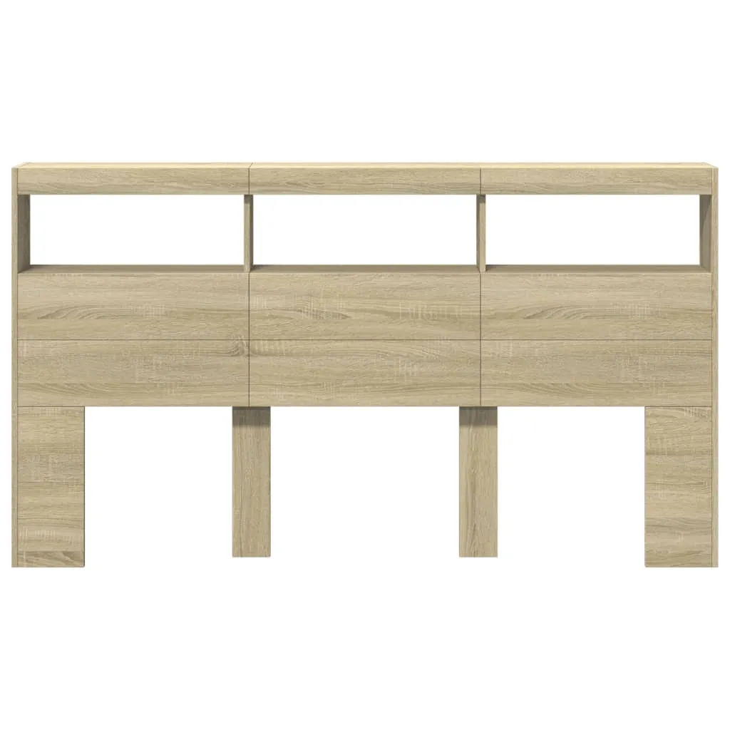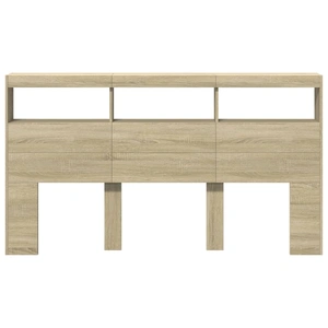 This headboard cabinet with LED, featuring a stylish design, gives your bed frame a stunning modern touch and is perfectly suitable in any bedroom. Durable material: The engineered wood is of exceptional quality with smooth surface and also features strength, stability and resistance to moisture.RGB LED lights: The bed headboard is equipped with vibrant RGB LED lights. With various customisable menus, you can effortlessly change the colour of the lights and even set them to adjust automatically. These LED lights not only enhance the contemporary look of the bed header but also add to its trendy appeal.Ample storage space: Featuring compartments and a sturdy top, the bed headboard cabinet is perfect for displaying your books, decorative items, picture frames and alarm clocks.Excellent support: The headboard for bed provides you with excellent back support when you sit up in bed to read or watch TV. Good to know:The delivery includes LED headboard only. The bed frame and mattress are not included. You can check our shop for the matching frames and mattresses.The product has a USB connector that requires a certified 5V USB power source (not included). Warning:To prevent it from tipping over, this product must be used with the provided wall attachment device.