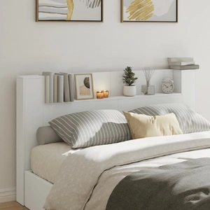 This headboard cabinet with LED, featuring a stylish design, gives your bed frame a stunning modern touch and is perfectly suitable in any bedroom. Durable material: The engineered wood is of exceptional quality with smooth surface and also features strength, stability and resistance to moisture.RGB LED lights: The bed headboard is equipped with vibrant RGB LED lights. With various customisable menus, you can effortlessly change the colour of the lights and even set them to adjust automatically. These LED lights not only enhance the contemporary look of the bed header but also add to its trendy appeal.Ample storage space: Featuring an open shelf, the bed headboard cabinet is perfect for displaying your books, decorative items, picture frames and alarm clocks.Excellent support: The headboard for bed provides you with excellent back support when you sit up in bed to read or watch TV. Good to know:The delivery includes LED headboard only. The bed frame and mattress are not included. You can check our shop for the matching frames and mattresses.The product has a USB connector that requires a certified 5V USB power source (not included). Warning:To prevent it from tipping over, this product must be used with the provided wall attachment device.
