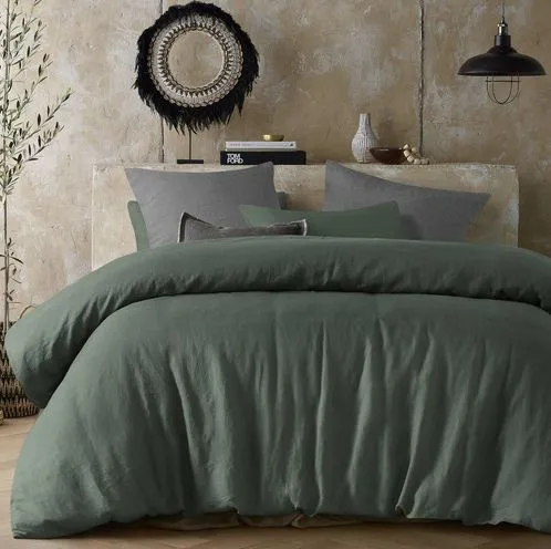 Hemp Sea Green Quilt Cover by Vintage Design Homeware Queen