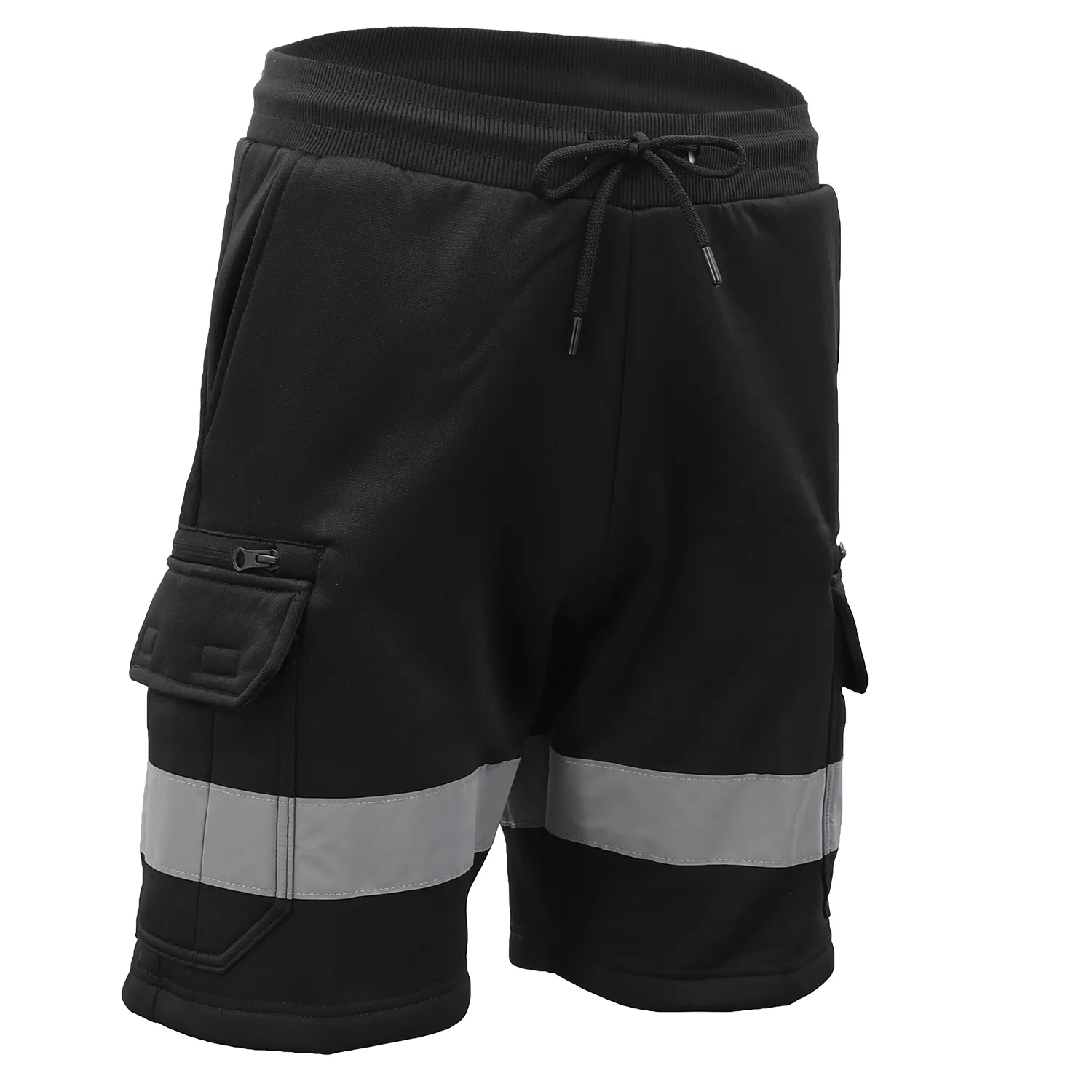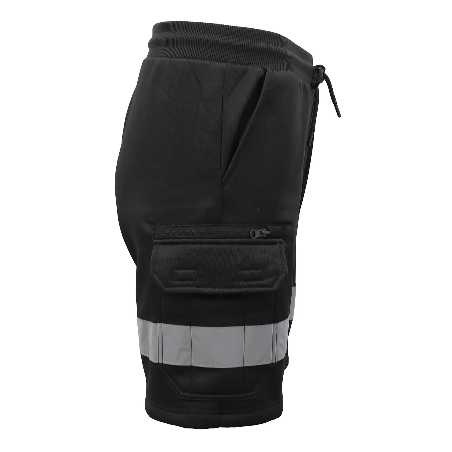 Hi Vis Fleece Work Cargo Shorts w Reflective Tape Workwear Tradie Utility Pants, Black, XL