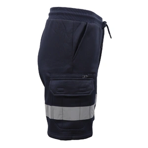 Hi Vis Fleece Work Cargo Shorts w Reflective Tape Workwear Tradie Utility Pants, Navy, S