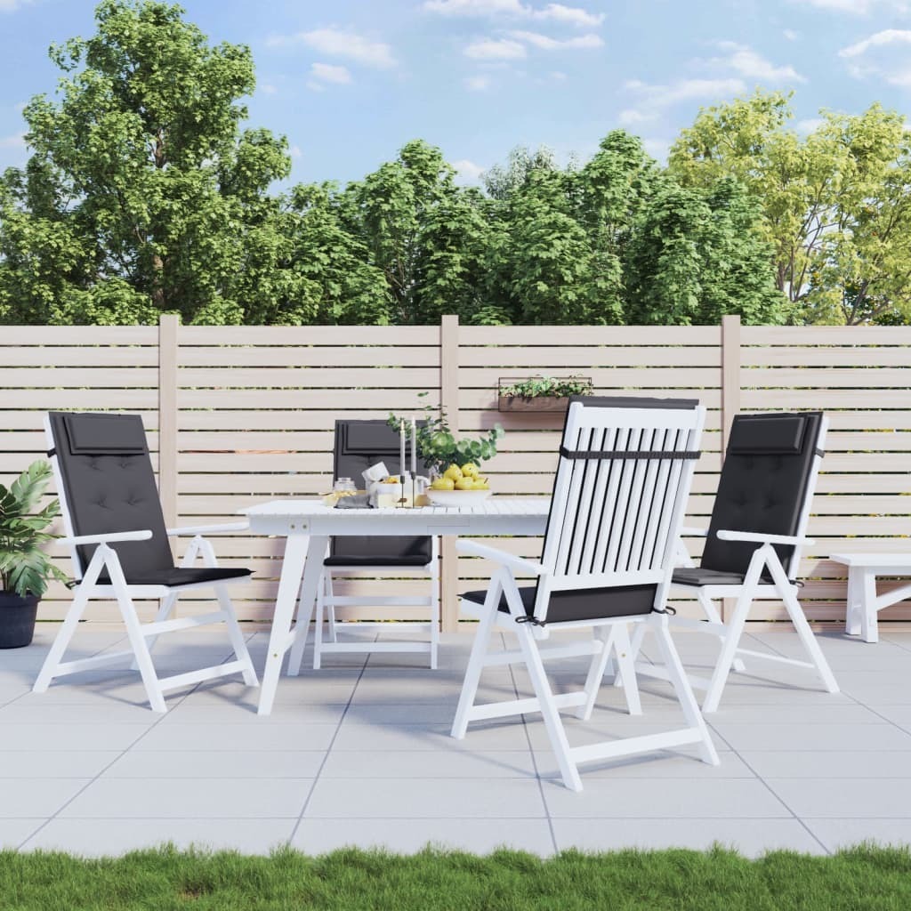 Give your outdoor living space a fresh look with these comfortable highback chair cushions in an instant! Durable material: Oxford fabric is lightweight, water-resistant, and also resistant to damage and dirt. The yarn used for weaving makes the fabric durable and breathable. It is also naturally resistant to wrinkles.Soft filling: The outdoor cushion is stuffed with foam fibre for ultra-soft and optimal seating comfort. The chair pillow regains its original shape after every use.Wide application: The cushion is not only suitable for outdoor use such as garden and patio furniture but can also be used indoors as a family chair pad and office chair pad. Also, it is a beautiful decoration to give your home a fresh look.Non-slip design: Thoughtfully designed ropes and elastic back strap make it easy to attach the cushion to furniture and keep it neatly and safely in place. Good to know:The product is packed under vacuum, so it requires some time to expand and recover to its original shape.