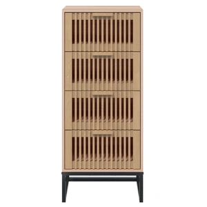 Are you hunting for a stylish highboard? This highboard adds a unique charm to your existing interior! Durable material: The engineered wood is of exceptional quality with smooth surface and also features strength, stability, and resistance to moisture.Ample storage space: The tall cabinet offers ample storage space for keeping your various daily essentials well organised and within easy reach.Wooden drawers: The cabinet features wooden drawers, which can protect your things from dust and dirt.Stable iron leg: The iron leg ensures sturdiness and stability.Displaying function: You can also place your favourite photos, decorations or flowers on top of the storage cabinet to enrich your life. Good to know:To make assembly as easy as possible, each product is delivered with a manual. Warning:To prevent it being overturned, this product must be used with the provided wall attachment device.