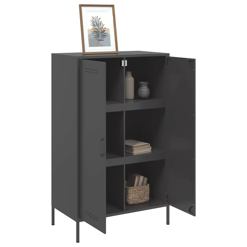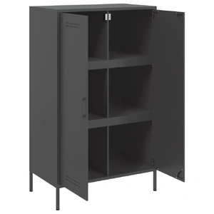 This sturdy highboard with an industrial style makes a timeless addition to your living room or bedroom. Robust and stable frame: Steel is strong, stable, and durable, making it an ideal choice for a wide range of applications, from furniture manufacturing to construction.Ample storage space: This highboard cabinet has 6 compartments, which provides ample storage space for keeping your various daily essentials well-organised and within easy reach. Easy to clean: The cupboard is easy to clean with a damp cloth and requires less maintenance.Practical door: Keep your space clutter-free by hiding your essentials behind the doors of the storage cabinet.Warning:To prevent it from tipping over, this product must be used with the provided wall attachment device.