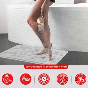 - Crafted from natural diatomaceous earth, the mat is completely chemical-free, offering a safe, breathable, and eco-friendly alternative to traditional cloth or plastic bath mats. Its minimalist grey finish complements all bathroom styles with a modern and clean look.