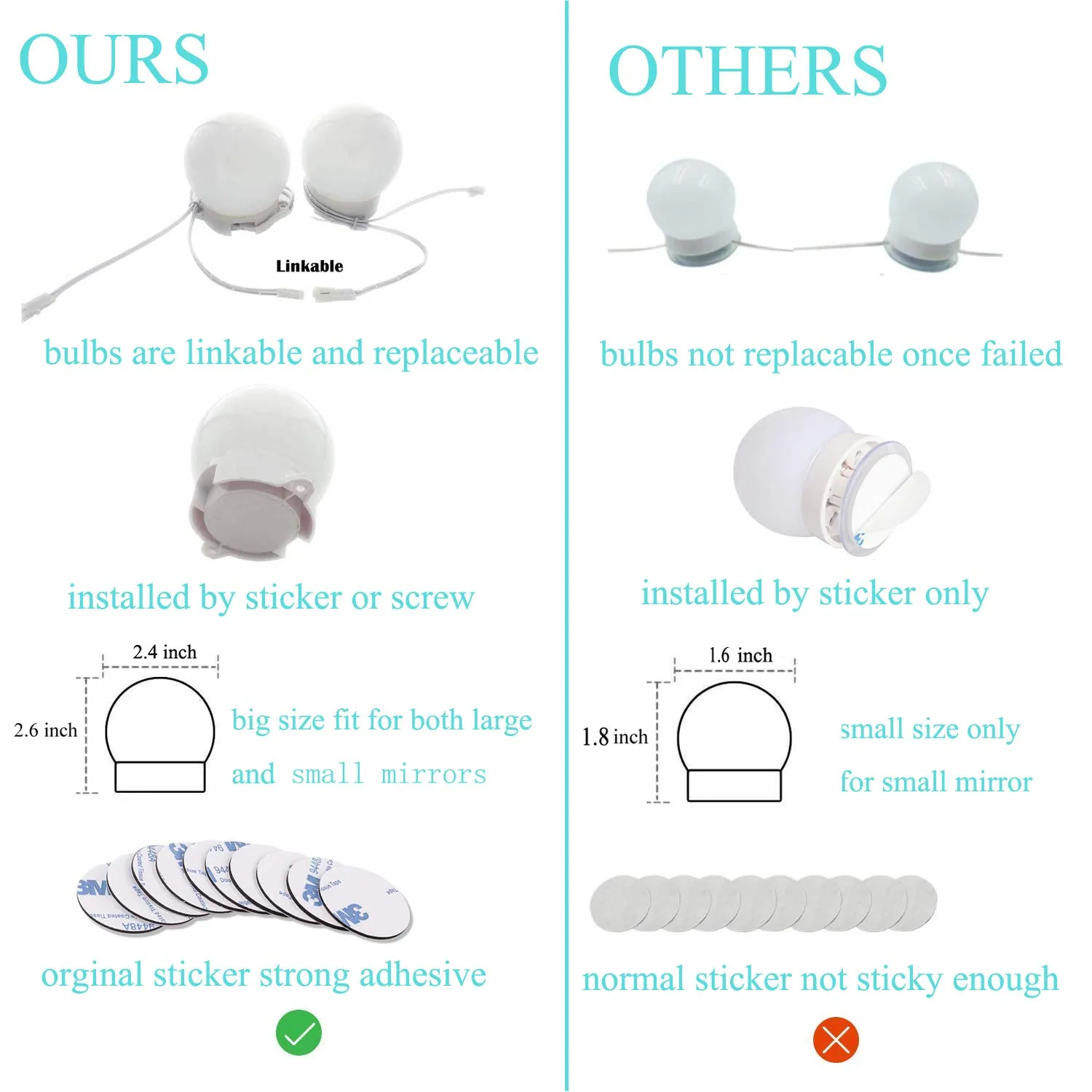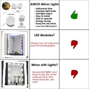 - @ BEST MAKEUP MIRROR VANITY LIGHTS: No need to buy an expensive LED mirror, the hollywood style light bulbs will make your mirror look fantastic.