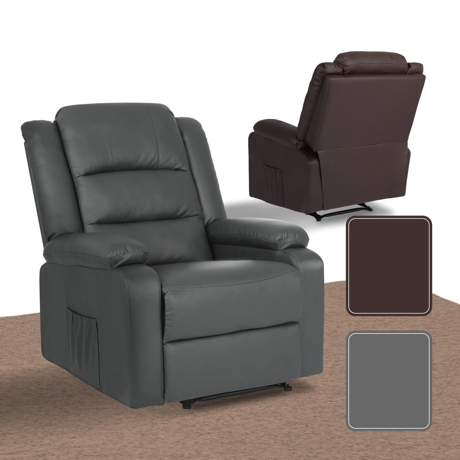 La Bella Home Recliner Chair - PU Leather Sofa Lounge Armchair MARLO - Grey