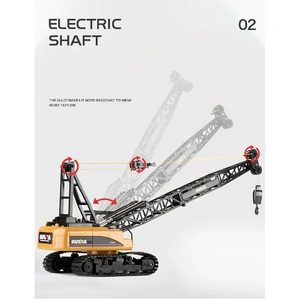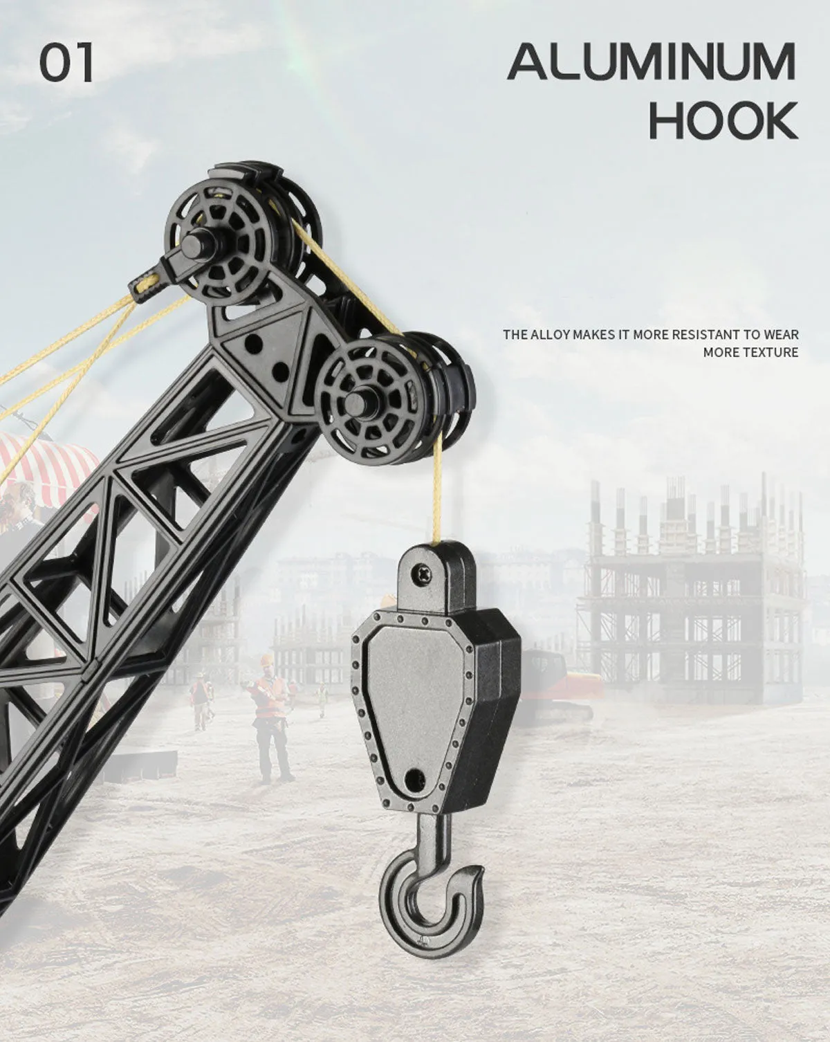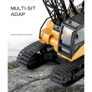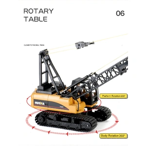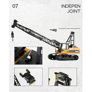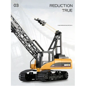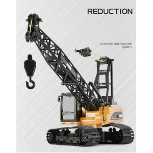 HUINA 1/14 SCALE RC CRAWLER CRANE 2.4G 15CH W/GRABThe HuiNa 15-Channel 2.4G Excavator is a 1/14 scale model of a real excavator that works just like the real thing. The bucket, cab and wheel hubs are all made of hard metal alloy for durability, while the rubber tread resist slip and wear, making it possible to climb effortlessly.