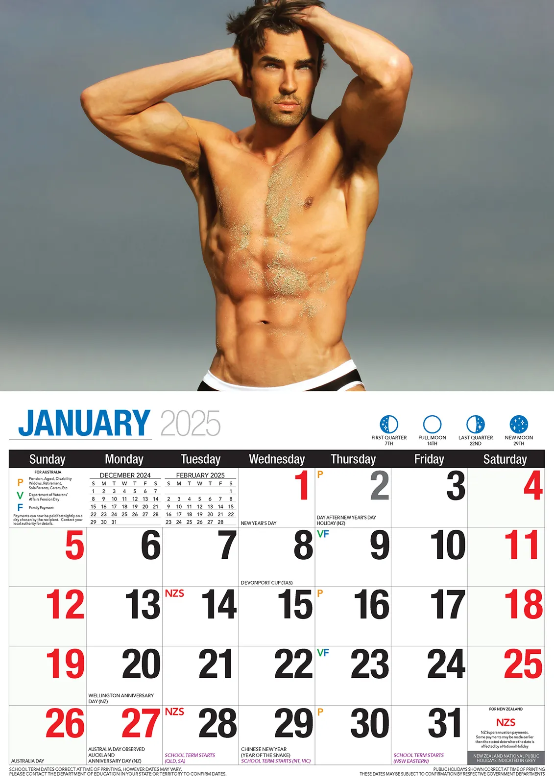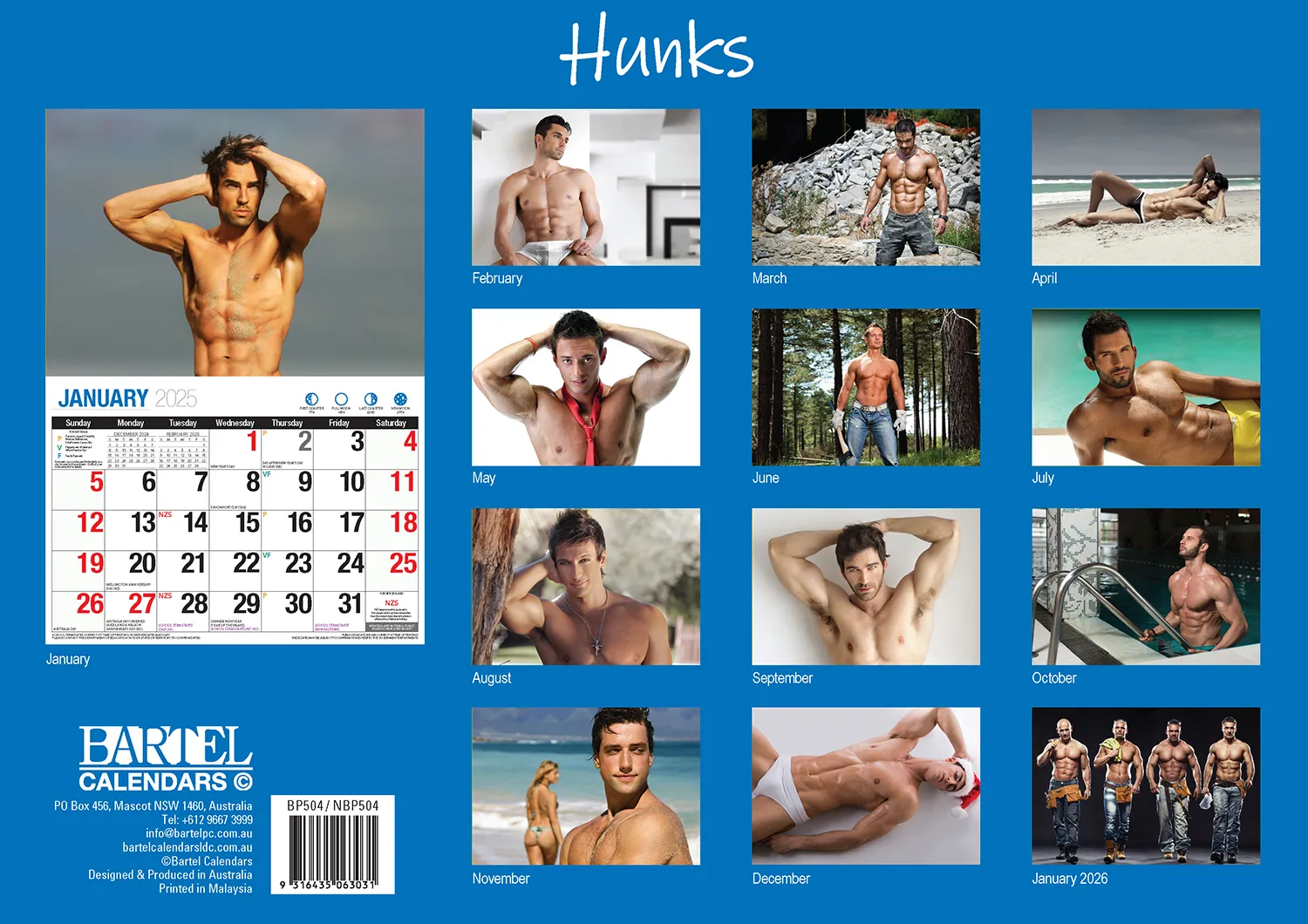 Enjoy 16 months of handsome men with this Hunks calendar, featuring a collection of attractive male photos that add a touch of allure to your 2025.Brand New Rectangle Wall Calendars with Beautifully design, a front and back cover, well Packed for Safe & Free Delivery.- Publisher: Bartel Calendars, Australia.