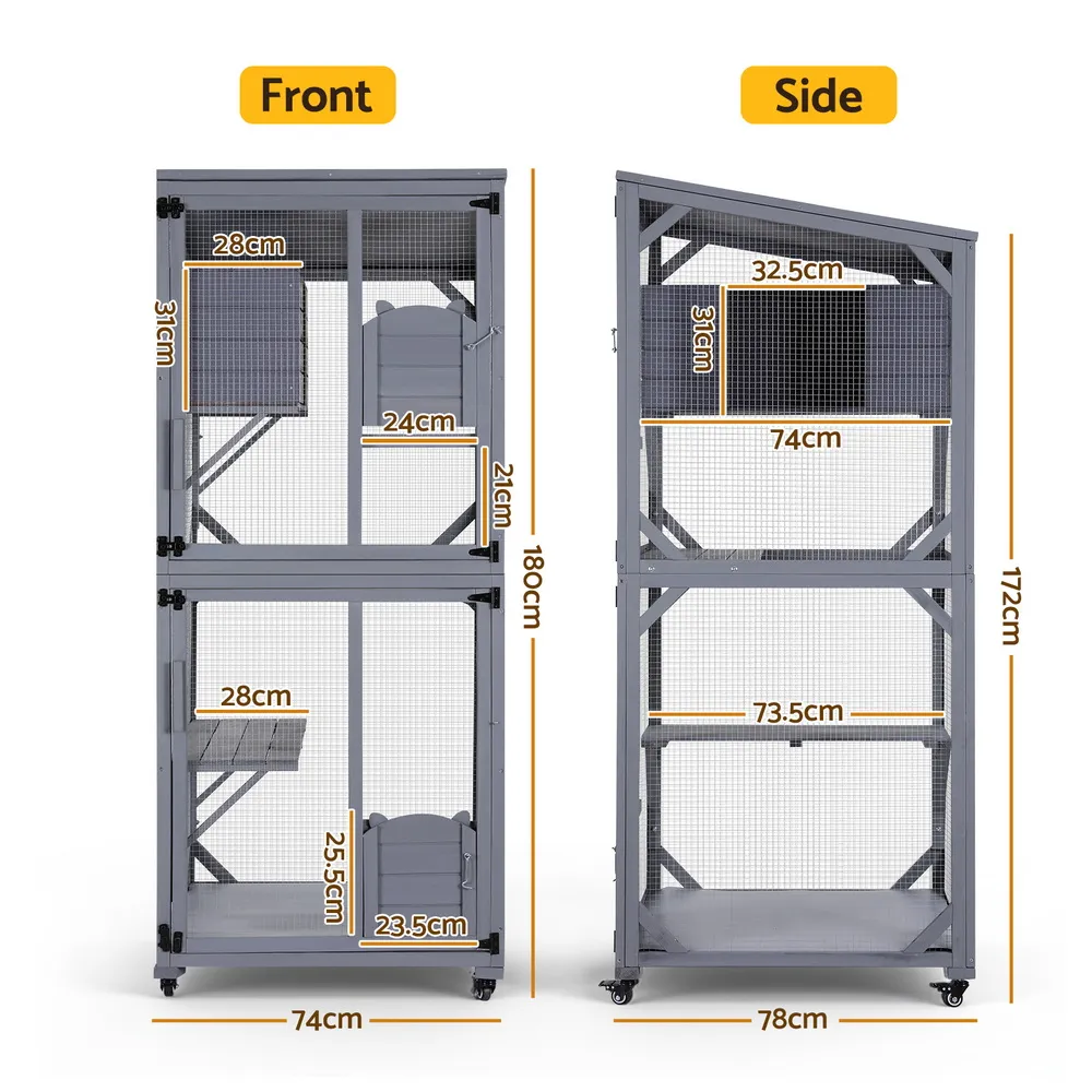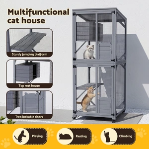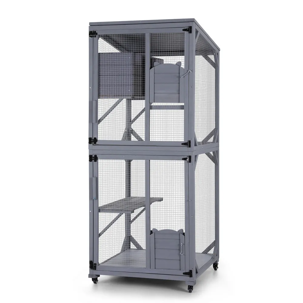 Boasting four expansive tiers, it offers plenty of room for climbing, playing, and napping. Your pets will love the sturdy jumping platforms and the secluded top rest house, perfect for a peaceful nap. The two lockable doors provide a secure and private space, giving you peace of mind. For added convenience, the four wheels allow you to easily move this pet house across hard floor surfaces, while the included bottom pad offers an extra layer of comfort.
