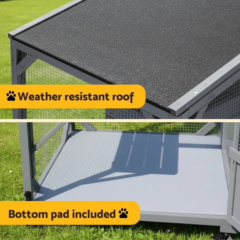Designed for both indoor and protected outdoor use, the classic grey finish features a practical asphalt felt roof that provides excellent water resistance. The design ensures convenient entry and exit for your pets and is remarkably easy to keep clean.