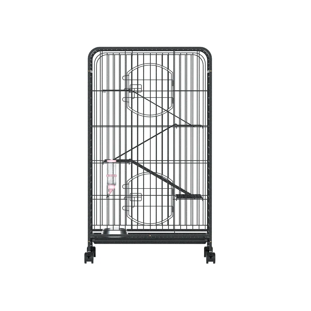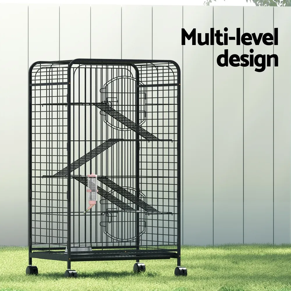 With plenty of room to roam and jump around, the i.Pet Pet Cage is a wonderful activity centre for your pets. With 4 levels, multiple platforms and removable activity ladders, the cage will keep your pets entertained and provide an exceptional home for your pets. The cage is constructed with a heavy-duty black steel frame that is powder-coated for rust resistance and durability. The bottom tray slides out for easy and convenient cleaning, while 2 large access doors make feeding a breeze. Locks help keep your pets secure inside and prevent visits from unwanted predators. Not least, the four smooth castor wheels enable the entire unit to be wheeled to any location hassle-free. Give your little furry friends a home that they will appreciate in their own natural instinctive way with the i.Pet Pet Cage.