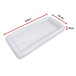 Introducing theInflatable Drinks Holder Floating Ice Bar Pool Party by Randy Travis Machinery.Made from 100% BPA-free, high-density PVC, this durable and reusable bar is designed for lasting use. Simply drain, deflate, dry, and store it for your next event.Just add ice, and this inflatable bar becomes a portable cooler to keep beers, sodas, and all beverages chilled, or to keep your salad bar options fresh and cool.A clear plug at the bottom corner allows for easy drainage and refilling with ice. Simply shift the bar slightly and drain into a bucket.Perfect for pool parties, this inflatable serving bar can float on water, eliminating the need to run to the kitchen. It's an excellent addition to any indoor or outdoor summer event, impressing your guests effortlessly.